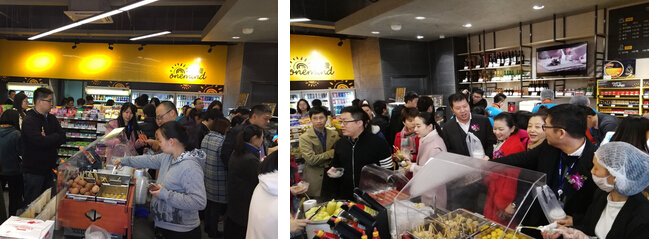 除了常規(guī)的商品陳列區(qū)和收銀區(qū)之外,萬麥便利店內(nèi)還設計了環(huán)形冷鮮區(qū)、自助熟食區(qū)、面包制作區(qū)、促銷堆頭區(qū),區(qū)域設計十分獨特,開啟了便利店經(jīng)營的新模式。