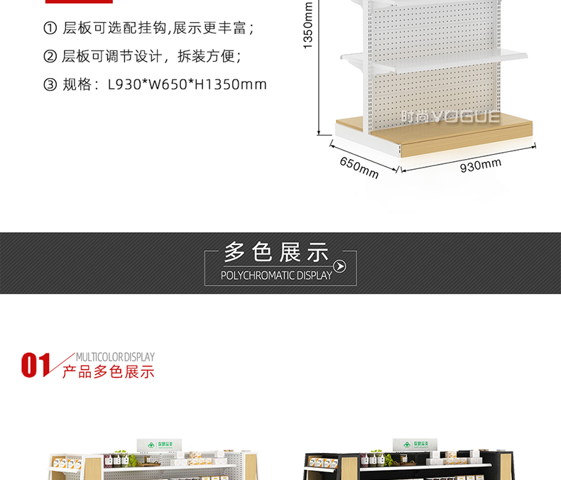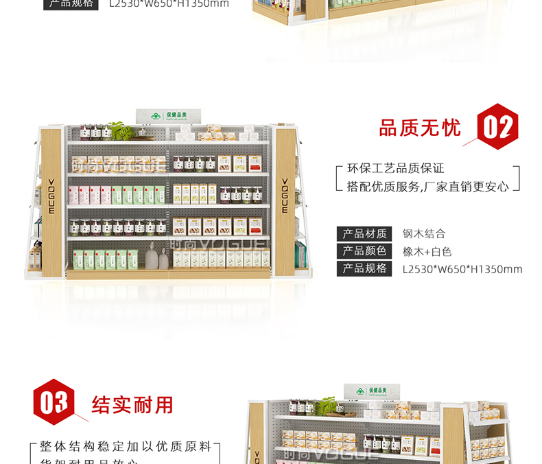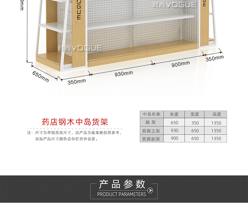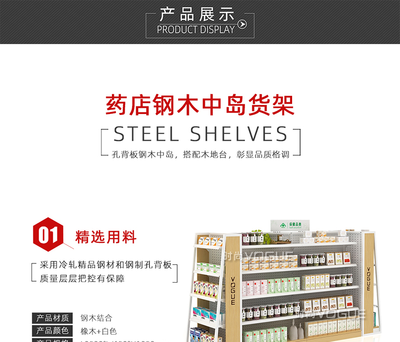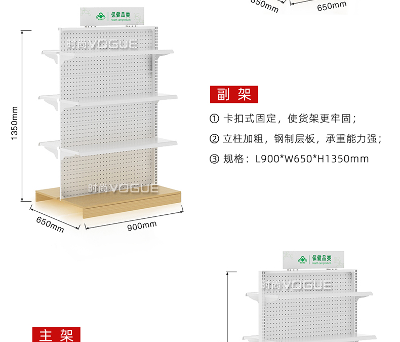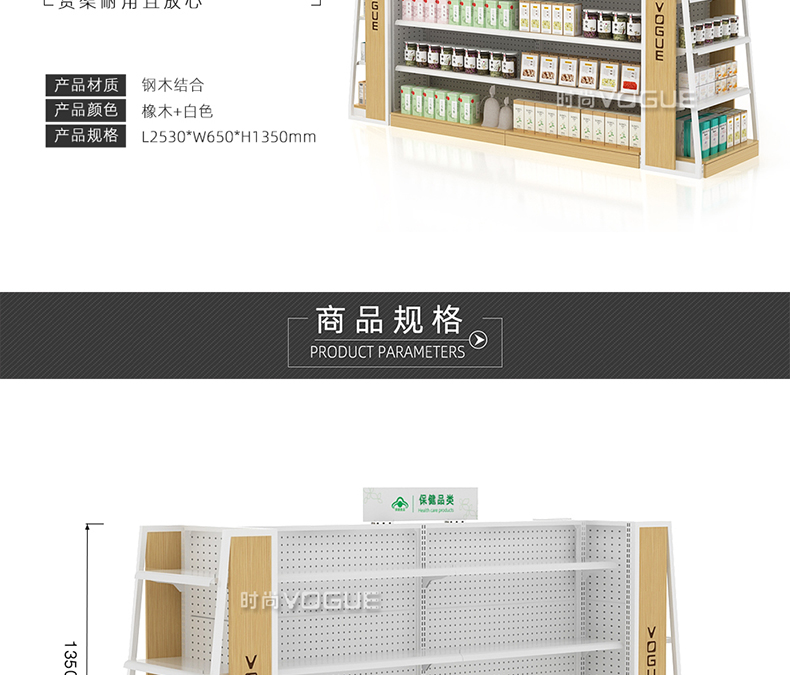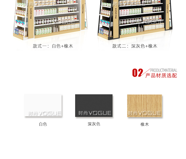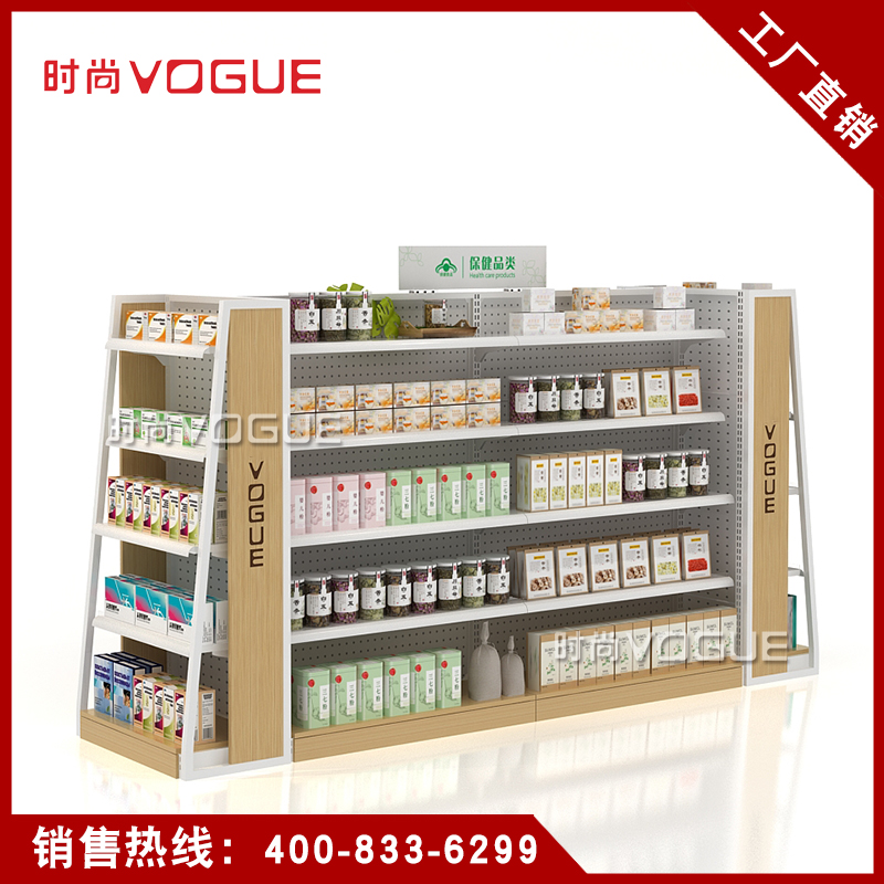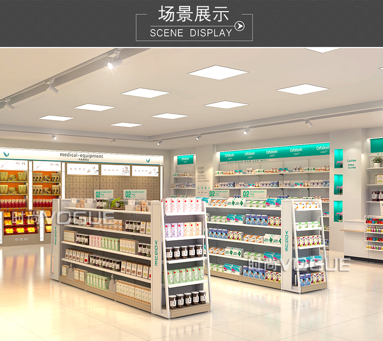 • 產品描述:深圳市時尚商貿有限公司為社區藥店設計了一款經濟型的開放式西藥貨架,以下詳細介紹了藥店非處方貨架的尺寸、結構和陳列效果。
