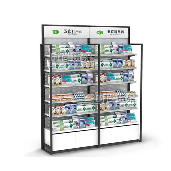 藥店貨架_單面貨架(孔板地柜帶中框)