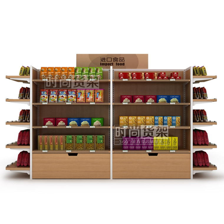 進口食品貨架是深圳貨架廠時尚貨架專為便利店進口食品區打造的一款雙面式便利店貨架,想了解更多其他便利店貨架,歡迎咨詢時尚貨架客服。