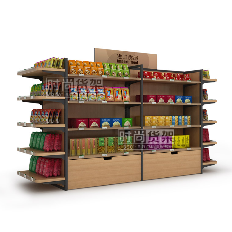 【產品名稱】便利店進口食品貨架/木背板便利店零食架/帶地柜食品貨架
