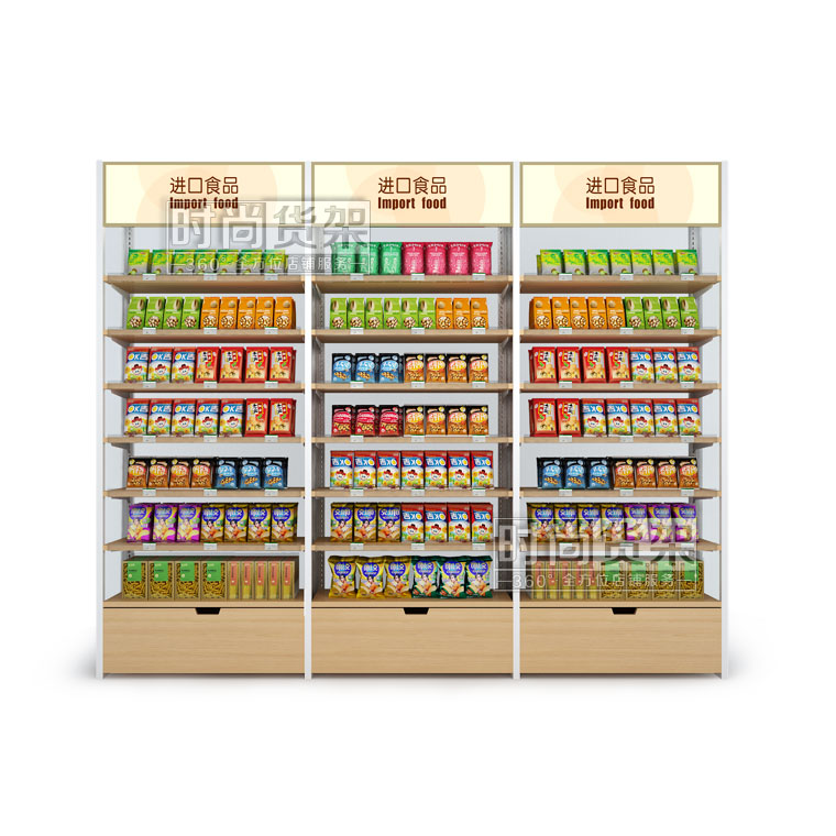 本款便利店貨架為單面貨架,如想了解雙面式便利店貨架歡迎咨詢時尚貨架客服。