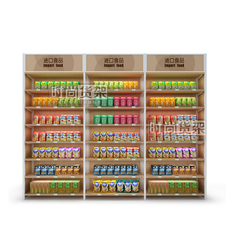 便利店貨架廠家【時尚貨架】推出的這款進口食品貨架適用于便利店食品區,商品展示效果佳,能有效提升便利店整體形象。