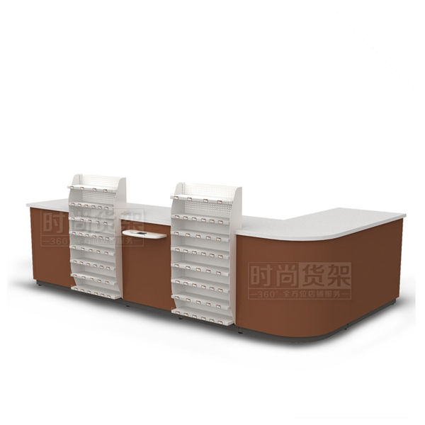 - 產(chǎn)品描述:此款便利店收銀臺是時尚貨架專為便利超市設(shè)計的一款多功能轉(zhuǎn)角收銀臺。